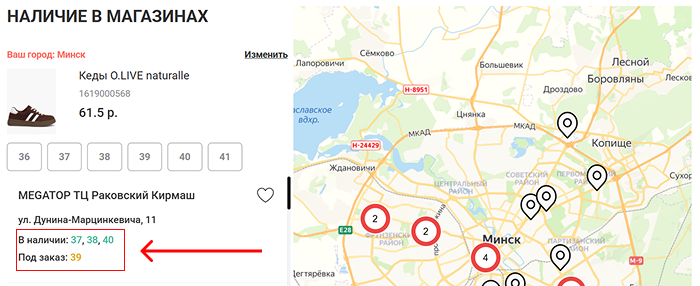 Доставка заказа в магазин возможна со склада, если стоимость вашего заказа более 20 рублей и при наличии выбранных товаров на складе. Товар под заказ со склада обозначается жёлтым цветом в размерном ряду. Зелёным цветом обозначается товар, доступный к бронированию в магазине.